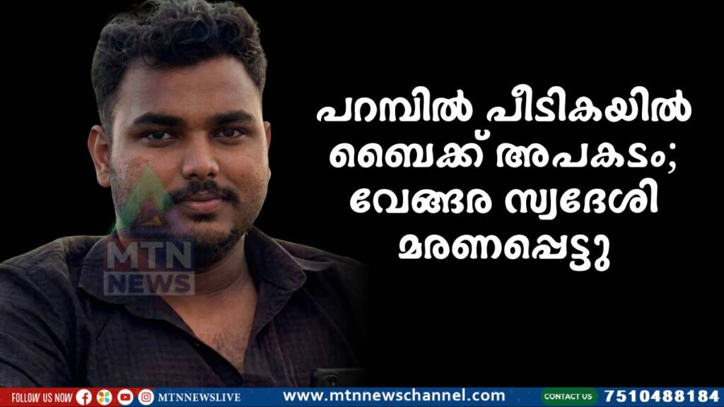 വേങ്ങര: കുറ്റൂർ മാടംചിന സ്വദേശി പറമ്പിൽ പീടികയിൽ ഉണ്ടായ ബൈക്ക് അപകടത്തിൽ മരണപ്പെട്ടു. കുറ്റൂർ മാടംചിന ചക്കിപ്പറമ്പത്ത് ഉസ്മാന്റെയും സഫിയയുടെയും മകൻ ചക്കിപ്പറമ്പത്ത് മുനീർ ആണ് മരണപ്പെട്ടത്. ഇന്ന് (ഞായർ) വൈകുന്നേരം 5 മണിയോടെ പറമ്പിൽ പീടികയിലായിരുന്നു അപകടം സംഭവിച്ചത്. അപകടത്തിൽ മുനീറിനൊപ്പമുണ്ടായിരുന്ന കൊട്ടേക്കാടൻ നിസാറിനും പരിക്കേറ്റു. അപകടത്തിന് തൊട്ടുപിന്നാലെ ഇരുവരെയും കോഴിക്കോട് മെഡിക്കൽ കോളേജ് ആശുപത്രിയിൽ എത്തിച്ചെങ്കിലും മുനീറിന്റെ ജീവൻ രക്ഷിക്കാനായില്ല. പരിക്കേറ്റ നിസാർ നിലവിൽ ചികിത്സയിൽ തുടരുകയാണ്. മയ്യിത്ത് നമസ്കാരം ഉൾപ്പെടെയുള്ള മറ്റു വിവരങ്ങൾ പിന്നീട് അറിയിക്കുന്നതാണ്.