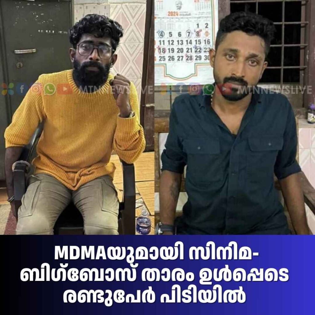 മയക്കുമരുന്നുമായി സിനിമാതാരം ഉള്പ്പടെ രണ്ട് പേർ പിടിയില്. 10.5 ഗ്രാം എം.ഡി.എം.എ.യും ഒൻപത് ഗ്രാം കഞ്ചാവുമായാണ് ഇവർ പിടിയിലായത്. സിനിമ-ബിഗ്ബോസ് താരം എറണാകുളം കുന്നത്തുനാട് വെങ്ങോല പള്ളിക്കൂടത്തിങ്കല് വീട്ടില് പരീക്കുട്ടി (ഫരീദുദ്ദീൻ-31), കോഴിക്കോട് വടകര കാവിലുംപാറ കൊയിലോംചാല് പെരിമാലില് വീട്ടില് ജിസ്മോൻ (34) എന്നിവരെയാണ് മൂലമറ്റം എക്സൈസ് സംഘം അറസ്റ്റ് ചെയ്തത്.