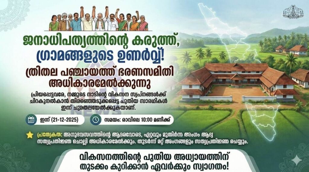 തദ്ദേശ സ്ഥാപനങ്ങളിലെ പുതിയ ജനപ്രതിനിധികളുടെ സത്യപ്രതിജ്ഞ ഇന്ന്