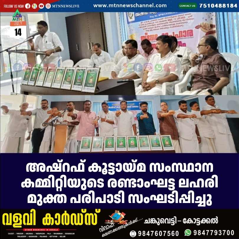 അഷ്റഫ് കൂട്ടായ്മ സംസ്ഥാന കമ്മിറ്റിയുടെ രണ്ടാംഘട്ട ലഹരി മുക്ത പരിപാടി സംഘടിപ്പിച്ചു