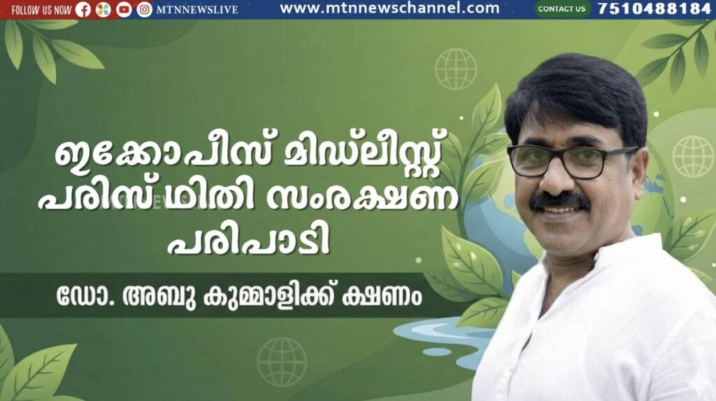 ജോർദാൻ ആസ്ഥാനമായി പ്രവർത്തിക്കുന്ന ഇക്കോപീസ് മിഡ്ലീസ്റ്റിന്റെ പരിസ്ഥിതി സംരക്ഷണ പരിപാടിയിലേക്ക് പ്രമുഖ കാർഷിക വിദഗ്ദനും ഗ്രന്ഥകാരനുമായ ഡോ. അബു കുമ്മാളിയെ ക്ഷണിച്ചു. 2026 ജനുവരി 10 മുതൽ വിവിധ രാജ്യങ്ങളിലായി 20 ദിവസം നീണ്ടുനിൽക്കുന്നതാണ് ഈ പരിപാടി. മുൻപും വിവിധ രാജ്യങ്ങളിൽ ഇക്കോപീസ് സംഘടിപ്പിച്ച പരിസ്ഥിതി ബോധവൽക്കരണ പരിപാടികളിൽ ഇദ്ദേഹം സജീവമായി പങ്കെടുത്തിട്ടുണ്ട്.’പരിസ്ഥിതിയുടെ മാനിഫെസ്റ്റോ’, ‘സഞ്ചാരപഥം’ എന്നീ ശ്രദ്ധേയമായ പുസ്തകങ്ങളുടെ രചയിതാവായ ഡോ. അബു കുമ്മാളി, ഇപ്പോൾ ചേലേമ്പ്രയുടെ ചരിത്രവും വർത്തമാനവും പ്രമേയമാക്കി ‘വഴിയും മിഴിയും’ എന്ന തന്റെ മൂന്നാമത്തെ പുസ്തകത്തിന്റെ പണിപ്പുരയിലാണ്. സാമൂഹിക-സാംസ്കാരിക രംഗങ്ങളിൽ സജീവ സാന്നിധ്യമായ അദ്ദേഹം നാഷണൽ കിസാൻ ലീഗ് സംസ്ഥാന പ്രസിഡന്റ് കൂടിയാണ്.