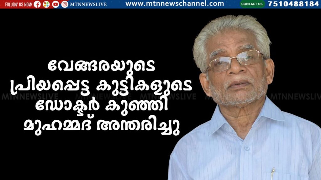 വേങ്ങര: വേങ്ങരയിലെ ജനങ്ങൾക്ക് ഏറെ സുപരിചിതനും കുട്ടികളുടെ ചികിത്സാ രംഗത്ത് ദീർഘകാലമായി സേവനമനുഷ്ഠിച്ചു വരികയായിരുന്ന ഡോക്ടർ കുഞ്ഞി മുഹമ്മദ് (82) അന്തരിച്ചു. വേങ്ങരയിലെ നിരവധി കുടുംബങ്ങളുമായി അടുത്ത ബന്ധം പുലർത്തിയിരുന്ന വ്യക്തിത്വമായിരുന്നു അദ്ദേഹം. കോഴിക്കോട് മെഡിക്കൽ കോളജിലെ ആദ്യ ബാച്ച് എം ബി ബിസുകാരനാണ്. മഞ്ചേരി ജില്ലാ ആശുപത്രി വേങ്ങര പിഎച്ച്സി എന്നിവിടങ്ങളിൽ ശിശുരോഗ വിദഗ്നായും മുസ്ലിം സർവ്വീസ് സൊസൈറ്റി സംഘാടകനായും സേവനം ചെയ്തിട്ടുണ്ട്. മയ്യിത്ത് നിസ്കാരം ഇന്ന് വൈകുന്നേരം 4:30-ന് വേങ്ങര വ്യാപാര ഭവൻ റോഡിലുള്ള ടൗൺ സലഫി മസ്ജിദിൽ വെച്ച് നടക്കും.