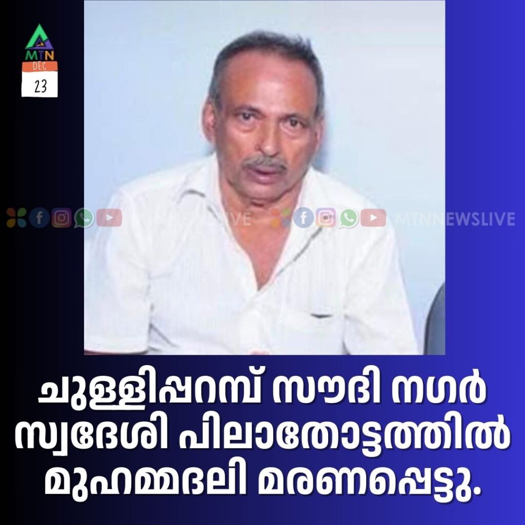 വേങ്ങര : ചുള്ളിപ്പറമ്പ് സൗദി നഗർ സ്വദേശി പിലാതോട്ടത്തിൽ മുഹമ്മദലി മരണപ്പെട്ടു. ഭാര്യ: ബിയ്യൂട്ടി. മക്കൾ: ഖാലിദ്, മുഹമ്മദ് മുസ്തഫ, സക്കീന, സലീന. ജനാസ നിസ്കാരം ഇന്ന് രാത്രി 10:00 മണിക്ക് അരീകുളം ജുമാ മസ്ജിദിൽ നടത്തപ്പെടും.