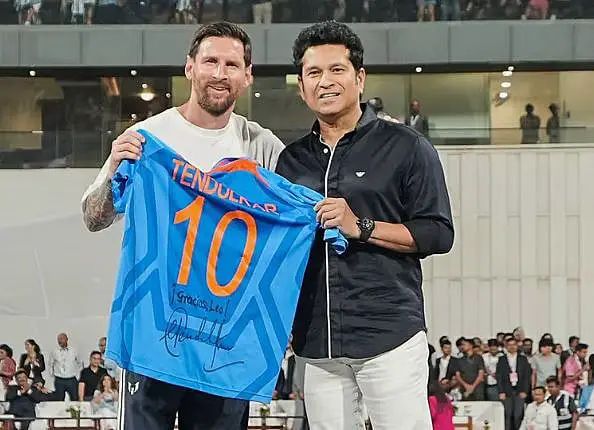 മുംബൈ: കായിക ലോകം കാത്തിരുന്ന അപൂർവ്വ നിമിഷത്തിന് മുംബൈ വാങ്കഡെ സ്റ്റേഡിയം സാക്ഷിയായി. അർജന്റീനയുടെ ലോകകപ്പ് ഹീറോ ലയണൽ മെസ്സിയും ക്രിക്കറ്റ് ഇതിഹാസം സച്ചിൻ ടെണ്ടുൽക്കറും ഒരേ വേദിയിലെത്തിയത് ആരാധകർക്ക് ആവേശമായി.ഇന്ത്യയിലെത്തിയ മെസ്സിയെ സ്വീകരിക്കാൻ സച്ചിൻ നേരിട്ടെത്തിയിരുന്നു. ഇന്ത്യൻ ക്രിക്കറ്റ് ടീമിന്റെ ജേഴ്സിയാണ് സച്ചിൻ മെസ്സിക്ക് സമ്മാനമായി നൽകിയത്. തിരിച്ച് അർജന്റീനയുടെ പ്രശസ്തമായ ലോകകപ്പ് ജേഴ്സി മെസ്സി സച്ചിനും കൈമാറി. ആർപ്പുവിളികളോടെയാണ് ഇരുവരെയും ഗാലറിയിലെ ആരാധകർ വരവേറ്റത്. വേദിയിൽ വെച്ച് ഇന്ത്യൻ ഫുട്ബോൾ ഇതിഹാസം സുനിൽ ഛേത്രിയെയും മെസ്സി കണ്ടുമുട്ടി. ഛേത്രിയെ കണ്ട ഉടൻ മെസ്സി അദ്ദേഹത്തെ കെട്ടിപ്പിടിച്ചത് കാണികൾക്ക് കൗതുകവും ആവേശവുമായി മാറി. കായിക പ്രേമികളുടെ മനസിൽ കുളിർകോരിയിടുന്ന കാഴ്ചയായിരുന്നു മുംബൈയിൽ അരങ്ങേറിയത്.