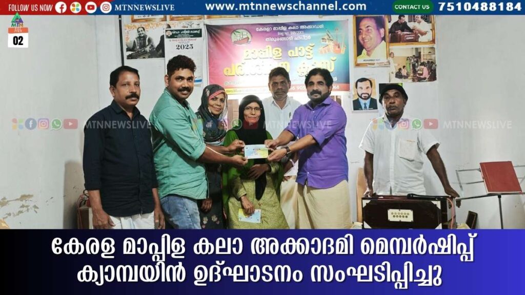 കേരള മാപ്പിള കലാ അക്കാദമി മെമ്പർഷിപ്പ് ക്യാമ്പയിൻ തിരുരങ്ങാടി ചാപ്റ്റർ സംസ്ഥാന ആക്ടിംഗ് പ്രസിഡന്റ് എ കെ. മുസ്തഫ ഉടുഘടനം ചെയ്തു. ചടങ്ങിൽ ചാപ്റ്റർ പ്രസിഡന്റ് അഷ്റഫ് മനരിക്കൽ അധ്യക്ഷം വഹിച്ചു സുഹ്റ കൊളപ്പുറം. കെ പി. നസീമ ടീച്ചർ സഹീദ് ഗ്രാമ്പു എം വി. റഷീദ് എന്നിവർ അംഗത്വം എടുത്തു. ഉസ്താദ് നല്ലവൻ മുഹമ്മദ്, തബലിസ്റ്റ് അപ്പുട്ടി മമ്പുറം, നുഹ ഖാസിം എന്നിവർ പങ്കെടുത്തു ആഗസ്റ്റ് 2 നു വൈകുന്നേരം 7 മണിക്ക് ചാപ്റ്റർ സംഗമം ചെമ്മാട് ഓഫിസിൽ സംഘടിപ്പിക്കും