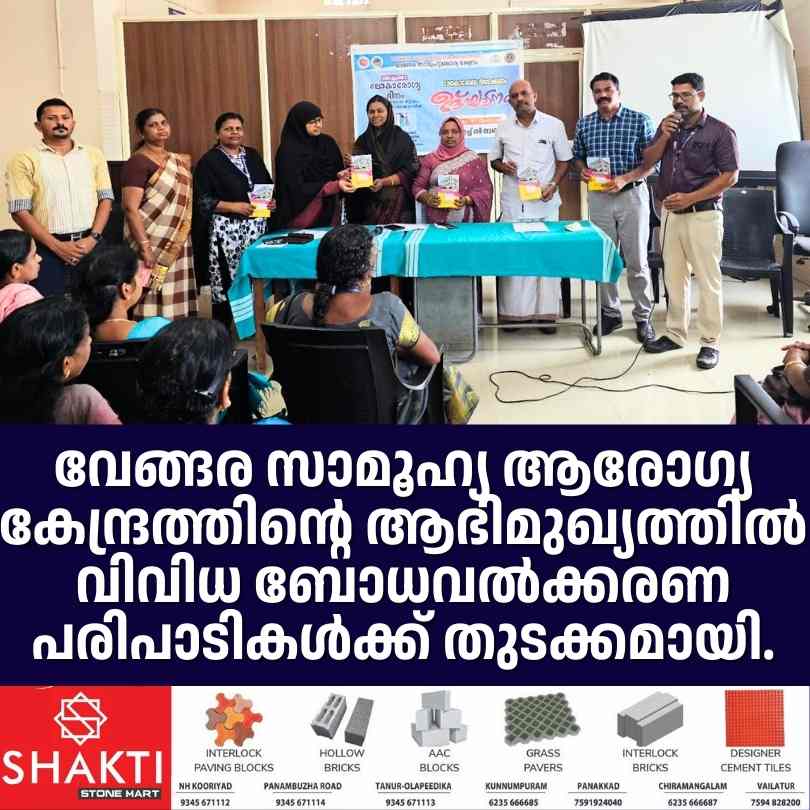വേങ്ങര: ലോകാരോഗ്യ ദിനവുമായി ബന്ധപ്പെട്ട് വേങ്ങര സാമൂഹ്യ ആരോഗ്യ കേന്ദ്രത്തിന്റെ ആഭിമുഖ്യത്തിൽ വിവിധ ബോധവൽക്കരണ പരിപാടികൾക്ക് തുടക്കമായി. ആരോഗ്യകരമായ തുടക്കം പ്രതീക്ഷാനിർഭരമായ ഭാവി എന്ന മുദ്രാവാക്യം ഉയർത്തിക്കൊണ്ട് വേങ്ങര പഞ്ചായത്തിലെ അഞ്ച് ജനകീയ ആരോഗ്യ കേന്ദ്രങ്ങളിൽ കൂട്ടനടത്തം സംഘടിപ്പിച്ചു. വേങ്ങര സാമൂഹ്യ ആരോഗ്യ കേന്ദ്രം കോൺഫറൻസ് ഹാളിൽ വച്ച് നടന്ന സെമിനാർ വേങ്ങര ബ്ലോക്ക് പഞ്ചായത്ത് പ്രസിഡൻറ് ബെൻസീറ ടീച്ചർ ഉദ്ഘാടനം ചെയ്തു. ആരോഗ്യ ഭേരി, ക്യാൻസർ രോഗ ബോധവൽക്കരണ നോട്ടീസ് എന്നിവയുടെ പ്രകാശന കർമ്മം വേങ്ങര ഗ്രാമപഞ്ചായത്ത് പ്രസിഡണ്ട് ഹസീന ഫസൽ നിർവഹിച്ചു. വേങ്ങര സാമൂഹിക ആരോഗ്യ കേന്ദ്രം മെഡിക്കൽ ഓഫീസർ ഡോക്ടർ സലീല അധ്യക്ഷത വഹിച്ചു. വേങ്ങര ബ്ലോക്ക് പഞ്ചായത്ത് വൈസ് പ്രസിഡണ്ട് അബൂബക്കർ മാസ്റ്റർ, പബ്ലിക്ഹെൽത്ത് നഴ്സിംഗ് സൂപ്പർവൈസർ തങ്ക തുടങ്ങിയവർ ആശംസകൾ നേർന്നു. സാമൂഹ്യ ആരോഗ്യ കേന്ദ്രം ഹെൽത്ത് ഇൻസ്പെക്ടർ വി ശിവദാസൻ, ജിജിൻ പബ്ലിക് ഹെൽത്ത് നഴ്സ് ഷീല തുടങ്ങിയ വിഷയാവതരണം നടത്തി. ഹെൽത്ത് സൂപ്പർവൈസർ കെ ഹരിദാസ് സ്വാഗതവും ജൂനിയർ ഹെൽത്ത് ഇൻസ്പെക്ടർ രവീന്ദ്രൻ നന്ദിയും പറഞ്ഞു.