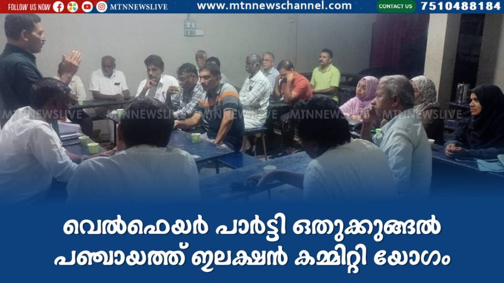 ഒതുക്കുങ്ങൽ : വെൽഫെയർ പാർട്ടി ഒതുക്കുങ്ങൽ പഞ്ചായത്ത് ഇലക്ഷൻ കമ്മിറ്റി യോഗം ജില്ലാ സെക്രട്ടറി ശാക്കിർ മോങ്ങം ഉദ്ഘാടനം ചെയ്തു. ത്രിതല പഞ്ചായത്ത് ഇലക്ഷനിൽ മത്സരിക്കുന്ന പാർട്ടി സ്ഥാനാർത്ഥികളുടെ വിജയത്തിന് വേണ്ടി എല്ലാ പാർട്ടി പ്രവർത്തകരും രംഗത്തുണ്ടാവുമെന്ന് അദ്ദേഹം പറഞ്ഞു. പഞ്ചായത്തിൽ ആട്ടീരി, പള്ളിപ്പുറം,മൂലപ്പറമ്പ്, മുനമ്പത്ത്, മീങ്കല്ല്, കാച്ചടിപ്പാറ,കൊടവണ്ടൂർ,വലിയ പറമ്പ്, എന്നീ വാർഡുകളിൽ തെരെഞ്ഞെടുപ്പ് കൺവെൻഷൻ സംഘടിപ്പിക്കാൻ യോഗം തീരുമാനിച്ചു. യോഗത്തിൽ പഞ്ചായത്ത് പ്രസിഡൻ്റ് കെ.വി. ഹമീദ് മാസ്റ്റർ അധ്യക്ഷത വഹിച്ചു. കമ്മിറ്റി അംഗങ്ങളായ എം. കുഞ്ഞാലി മാസ്റ്റർ, വി.കെ. ജലീൽ, ഇ. അബ്ദുറഹ്മാൻ, ടി. അബ്ദുസ്സലാം, ടി.റസിയ ടീച്ചർ, ടി.കെ.സുബൈർ, ടി. അബ്ദുറഹ്മാൻ, ഹനീഫ വടക്കേതിൽ, ഇല്ലിക്കൽ ഇബ്രാഹിം, കെ.വി. മമ്മു, ടി. മുബീന, അജ്മൽ വലിയപറമ്പ്, റസിയ എ.എം, മുഹമ്മദ് കുട്ടി വലിയപറമ്പ്, അലവി വടക്കേതിൽ, മനാഫ് ചീരങ്ങൻ, ടി. മുഹമ്മദ് അസ്ലം, ശബീറലി കെ.വി, എന്നിവർ ചർച്ചയിൽ പങ്കെടുത്ത് സംസാരിച്ചു. സെക്രട്ടറി എം.പി. അസൈൻ സ്വാഗതവും ഇലക്ഷൻ കൺവീനർ അബ്ദുൽ ബാസിത് കെ.പി. നന്ദിയും പറഞ്ഞു.