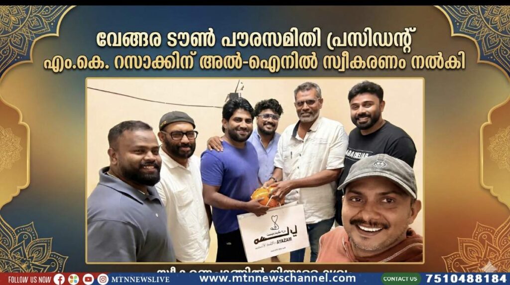 അൽ-ഐൻ: വേങ്ങര ടൗൺ പൗരസമിതി പ്രസിഡന്റ് എം.കെ. റസാക്കിന് അൽ-ഐൻ വേങ്ങര കൂട്ടായ്മ സ്നേഹോഷ്മള സ്വീകരണം നൽകി. പുല്ലമ്പലവൻ ഷമീറിന്റെ അദ്ധ്യക്ഷതയിൽ ചേർന്ന ചടങ്ങിൽ പ്രവാസി സമൂഹത്തിലെ നിരവധി പ്രമുഖർ സംബന്ധിച്ചു.സ്വീകരണത്തിന് നന്ദി രേഖപ്പെടുത്തിക്കൊണ്ട് പൗരസമിതിയുടെ പ്രവർത്തനങ്ങളെക്കുറിച്ചും നാട്ടിൽ നടത്തിവരുന്ന ലഹരി വിരുദ്ധ ക്യാമ്പയിനുകളെക്കുറിച്ചും എം.കെ. റസാക്ക് വിശദീകരിച്ചു. പ്രവാസി കുടുംബങ്ങളിലെ വിദ്യാർത്ഥികളെയും യുവാക്കളെയും പ്രത്യേകമായി ബോധവൽക്കരിക്കേണ്ടതിന്റെ ആവശ്യകതയെക്കുറിച്ച് അദ്ദേഹം യോഗത്തിൽ അദ്ദേഹം പറഞ്ഞു. ചടങ്ങിൽ റിയാസ് ചേറൂർ, ഷുക്കൂർ ആലിങ്കൽ, ഫർഹാൻ എ.കെ., ഷിബിലി കെ.എം., മുബാറക്ക് ബെൻസായി, ജലീൽ എട്ടുവീട്ടിൽ, എം.കെ. അഷ്റഫ്, ഗഫൂർ ബാവ, ഉണ്ണ്യാലുങ്ങൽ മാനു തുടങ്ങിയവർ ആശംസകൾ നേർന്ന് സംസാരിച്ചു.