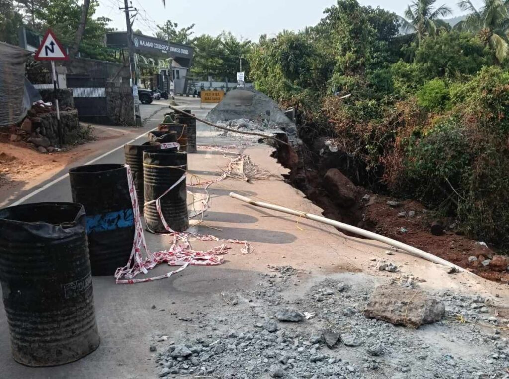 പാറക്കണ്ണി – കിളിനക്കോട് റോഡിൽ വൻതോതിൽ റോഡ് ഇടിഞ്ഞുതാഴ്ന്നതിനെത്തുടർന്ന് ഗതാഗതം പൂർണ്ണമായും നിരോധിച്ചു. പാറക്കണ്ണി മാലാ പറമ്പ് മലബാർ കോളേജിന് എതിർവശത്തുള്ള റോഡിന്റെ ഭാഗമാണ് വലിയ താഴ്ചയിലേക്ക് തകർന്നു വീണത്. അപകടസാധ്യത കണക്കിലെടുത്ത് ഈ പാതയിലൂടെയുള്ള വാഹന സഞ്ചാരം അധികൃതർ തടഞ്ഞു. റോഡ് തകർന്നതോടെ ഇതുവഴിയുള്ള ഗതാഗതം പൂർണ്ണമായും സ്തംഭിച്ച അവസ്ഥയിലാണ്. അടിയന്തരമായി അറ്റകുറ്റപ്പണികൾ നടത്തി റോഡ് ഗതാഗതയോഗ്യമാക്കണമെന്നാണ് നാട്ടുകാരുടെ ആവശ്യം.