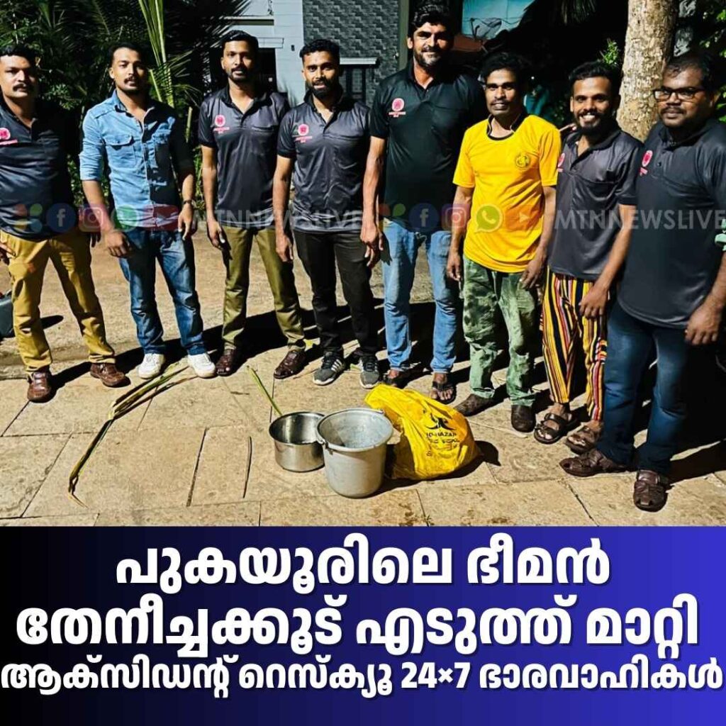 എ ആർ നഗർ: പുകയൂരിലെ വീട്ടുമുറ്റത്തെ പ്ലാവിൽ നാട്ടുകാർക്ക് ശല്യമായിരുന്ന വലിയ തേനീച്ച കൂട് ആക്സിഡന്റ് റെസ്ക്യൂ 24×7 മലപ്പുറം ജില്ലാ ഭാരവാഹികളും തിരൂരങ്ങാടി താലൂക്ക് ഭാരവാഹികളും ചേർന്ന് എടുത്ത് മാറ്റി. ഇന്നലെ 11/11/2024 രാത്രി നാട്ടുകാരനായ സലീം പുകയൂർ അറിയിച്ചതിന്റെ അടിസ്ഥാനത്തിൽ ആക്സിഡന്റ് റെസ്ക്യൂ 24×7 മലപ്പുറം ജില്ലാ ഭാരവാഹികളും തിരൂരങ്ങാടി താലൂക്ക് ഭാരവാഹികളും എത്തി എടുത്ത് മറ്റുകയായിരുന്നു. ഭാരവാഹികളായ ജംഷീർ കൂരിയാട്, ഷെഫീഖ് സി കെ നഗർ, ജംഷാദ് പടിക്കൽ,സലീം പുകയൂർ, റാഷിദ് അറക്കൽ പുറായ, മുഹമ്മദ് വേങ്ങര, നൗഫൽ NC വള്ളിക്കുന്ന്,മുബഷിർ വേങ്ങര എന്നിവർ നേതൃത്വം നൽകി.